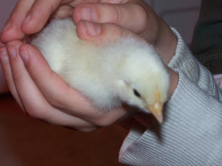 Yep, I really do have four chickens in my bathroom again. I decided to get some new baby chicks this year so we could double our "flock" and have more eggs. We have four full-grown hens and today the boys and I went to our local Bomgaar's and bought four more "girls". By this fall, we should be in the organic, farm-fresh egg business. My sons are old enough now to be more involved in caring for the chickens and gathering the eggs. They can profit from their efforts by selling the eggs to friends and family. It is so fun to raise chickens from chick-hood. They are so cute. I sat in the bathroom and watched them for a long time tonight. At this age, they fall asleep very easily. When they sleep they completely sack out and almost look dead. Sometimes they will be standing up and their eyes will drift closed, then their head droops down, finally their legs collapse and they are sound asleep. I watched one tonight who was getting drowsy right by the water bottle. Her head would start falling until her beak dipped into the water. Then she would startle awake, raise her head to swallow, then quickly fall right back to sleep. It was so cute. For you poultry-minded folks, we got two Ameraucanas (they will lay bluish eggs, which should be fun), one White Rock and one White Leghorn. The Ameraucanas are the darker ones, and the White Rock and White Leghorn are the yellow ones. The White Rock will lay brown eggs, and the white leghorn white eggs. They should be laying by September. PS: For those of you who are wondering, the chicks in the bathroom are in a Rubbermaid tub with a vented lid. They are not in my bathtub!! PPS: I apologize (to myself as much as to anyone who reads this blog) for not posting more often. Hopefully that will change after the school year ends. PPPS: Some exciting news which I have not yet shared online.............this fall I am finally going to be...........a homeschool mama!! Yay!! I am very excited. I've wanted to do this for 10 years (I've been a mom for about 10 years) and am finally taking the plunge! I will document this journey on a new blog which I will start posting on sometime near the end of May.